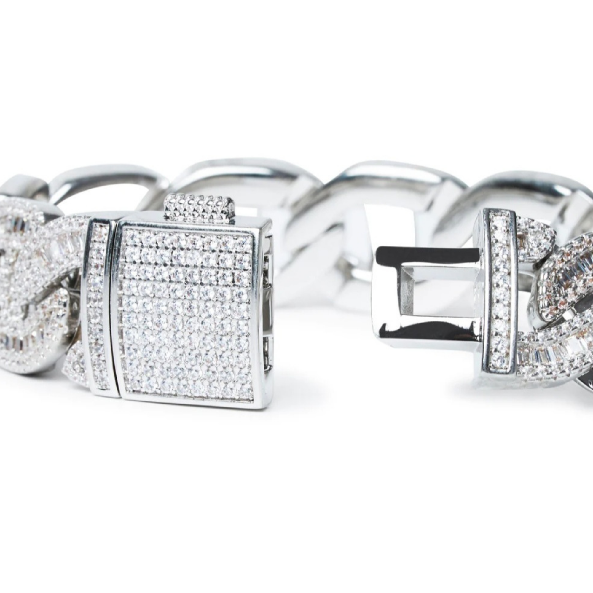 We designed our Baguette bracelet with a signature baguette clasp / lock, iced out all around.