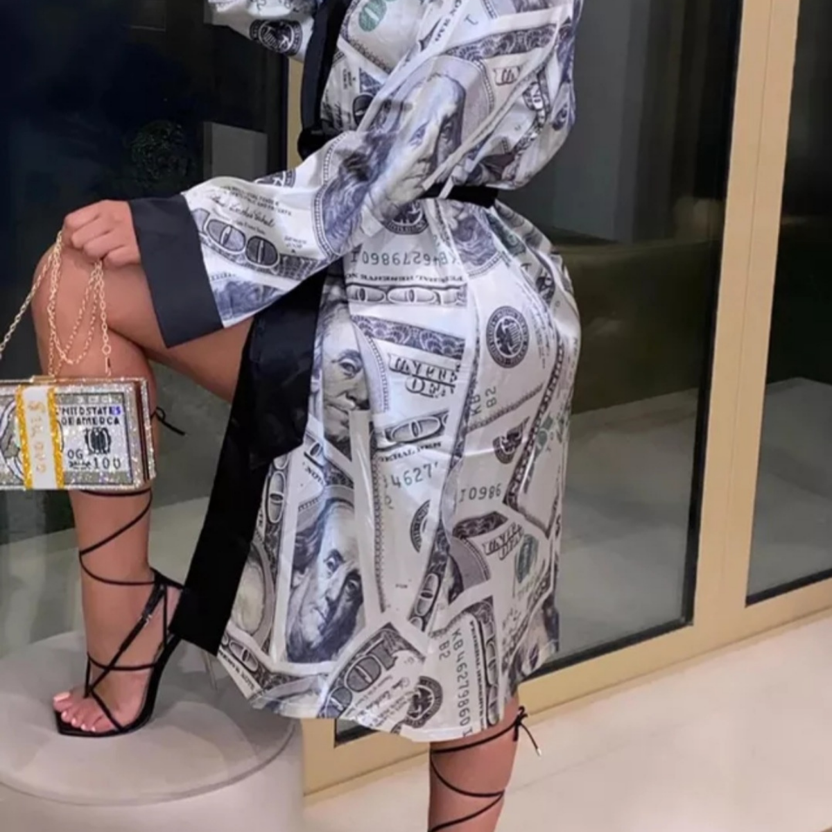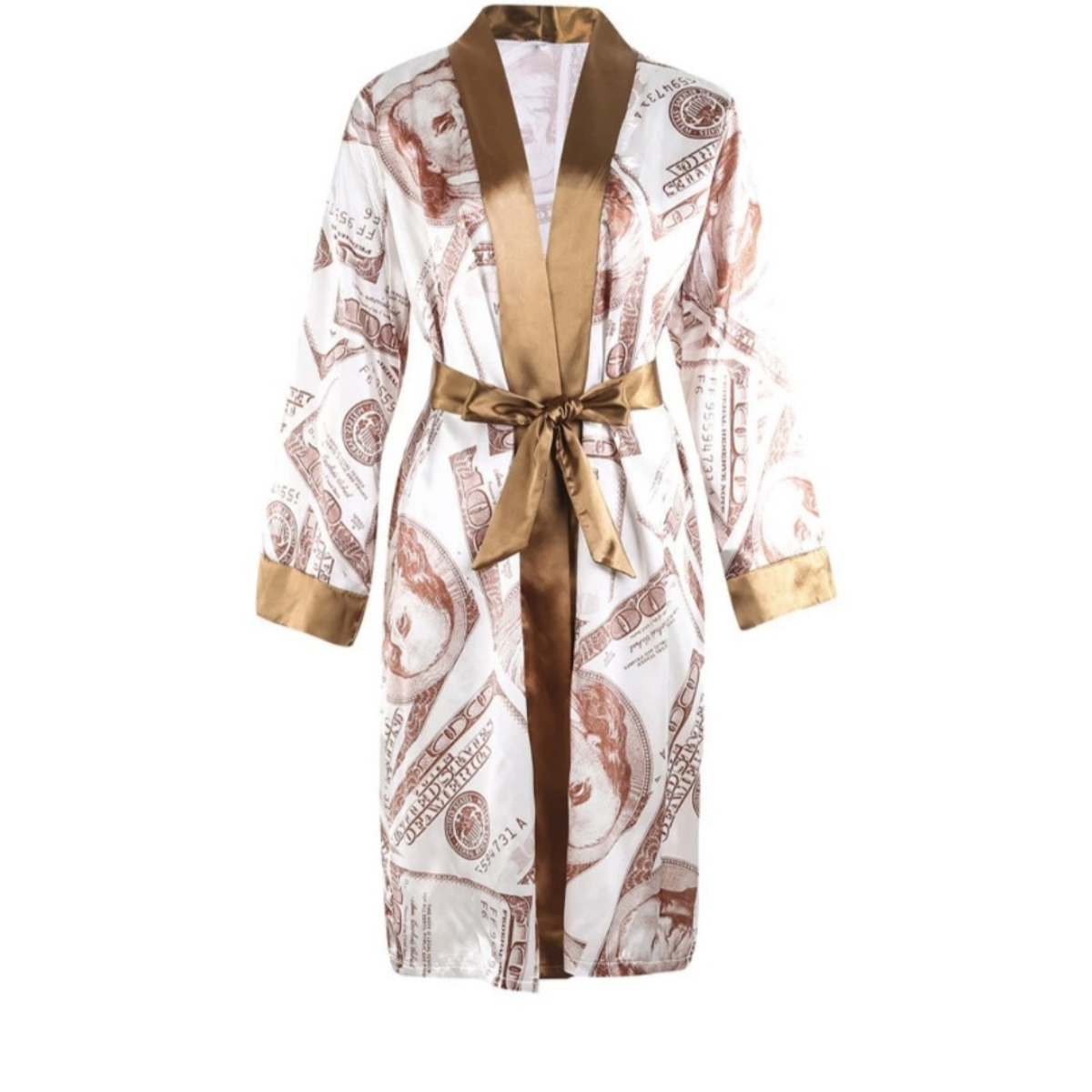 - Feature: Belted kimono robe design, Long sleeve, elegant V-neck design, Dollars money print, Wedding Party Loungewear, Satin Wedding Kimono, Dollar Print Bride Bridesmaid Kimono Sleepwear, make you very charming!