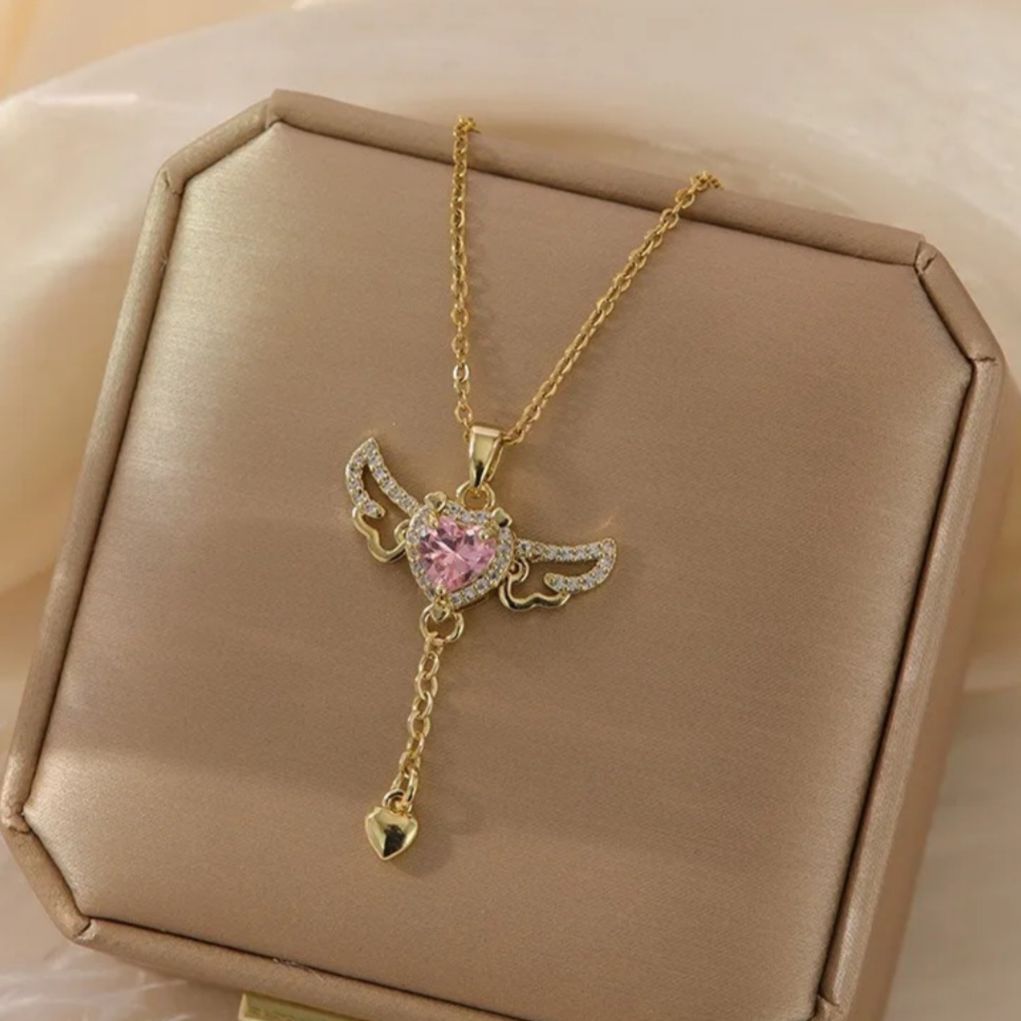 Cubic Zirconia Heart Angel Wing Necklace
